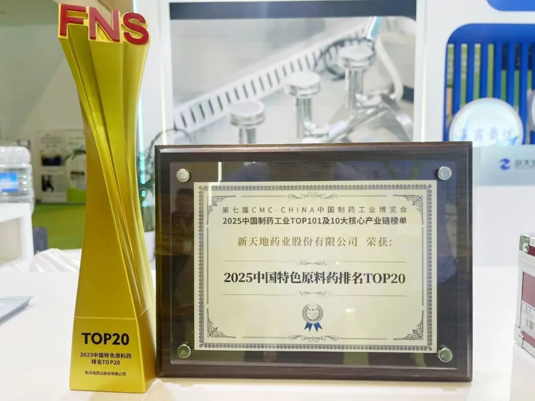 喜报!新天地药业荣登“2025中国特色原料药排名TOP20”榜单